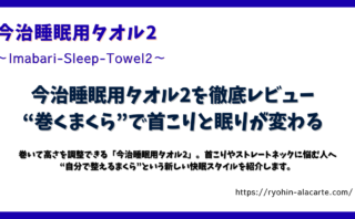 寝具 今治睡眠用タオル2を徹底レビュー|“巻くまくら”で首こりと眠りが変わる 巻いて高さを調整できる「今治睡眠用タオル2」。首こりやストレートネックに悩む人へ、“自分で整えるまくら”という新しい快眠スタイルを紹介します。 2025.10.10 寝具枕・クッション
