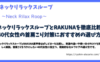 健康 ネックリラックスループ vs RAKUNA|首肩こりに悩む40代女性のリアルな選び方 ネックリラックスループとRAKUNA肩甲骨はがしピローを比較し、刺激の違いや使い分けのコツを詳しく解説。首肩こりをラクにしたい40代女性に役立つ、現実的なセルフケアの選び方です。 2025.10.07 健康